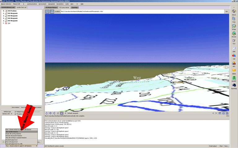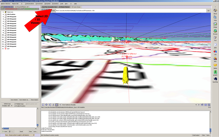 You can now select the two tabbed panes, "2D Mission Planner" and "3D Scene Viewer" to observe the missions proceeding.